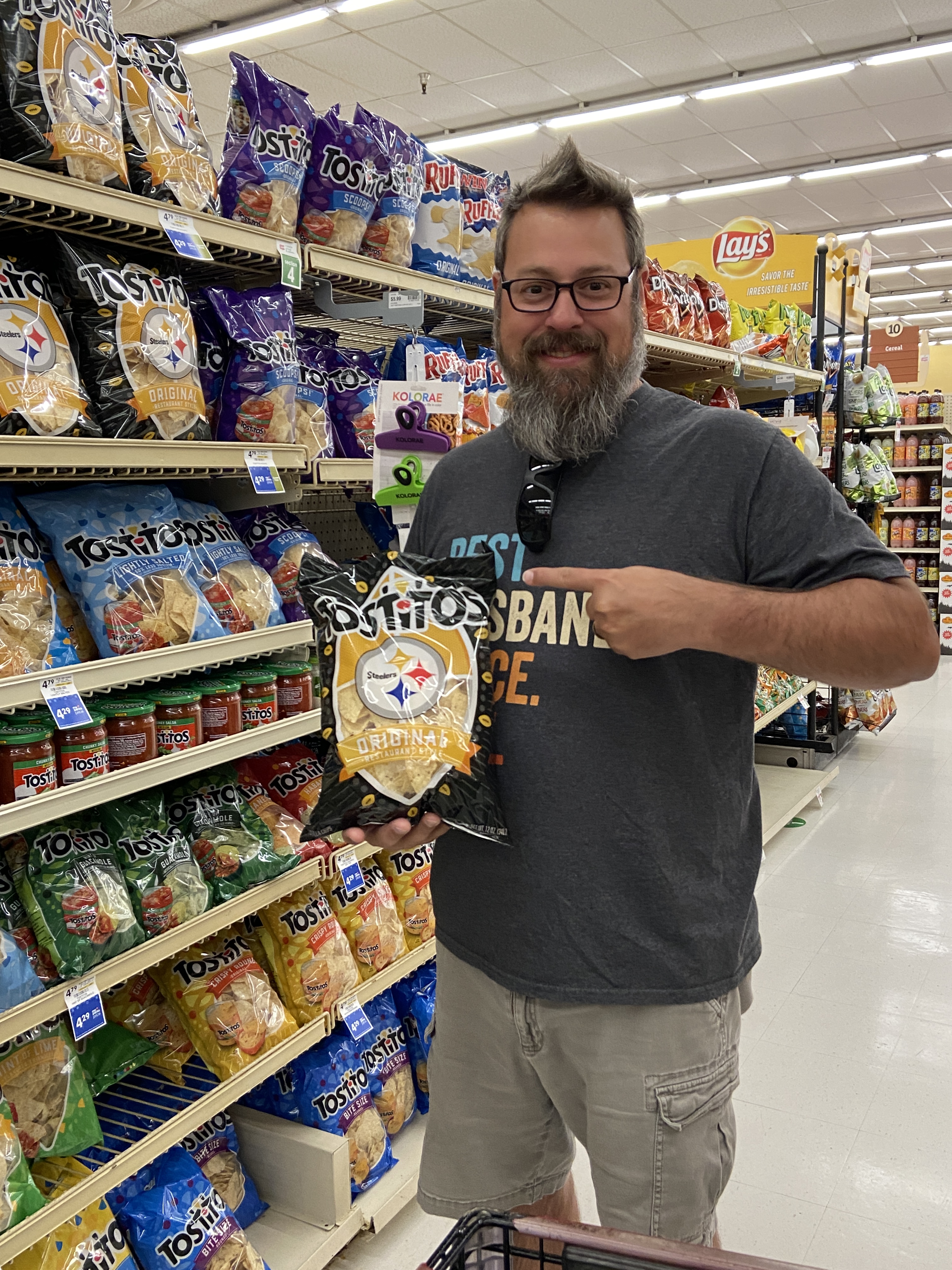 Jay also introduced me to the fact that while we were in PGH there would be Steelers and Pittsburgh sports teams on anything and EVERYTHING imaginable. hahah! Check out these Steelers Tostitos! hahah
